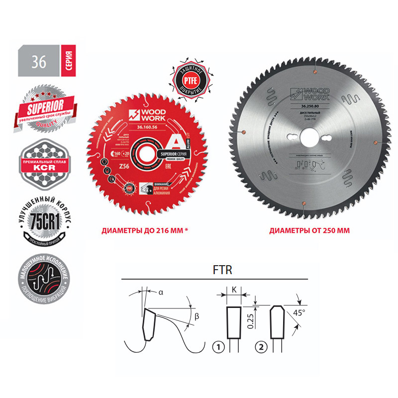 Пильные диски Woodwork SUPERIOR Серия 36 — чистый рез алюминия и цветных металлов