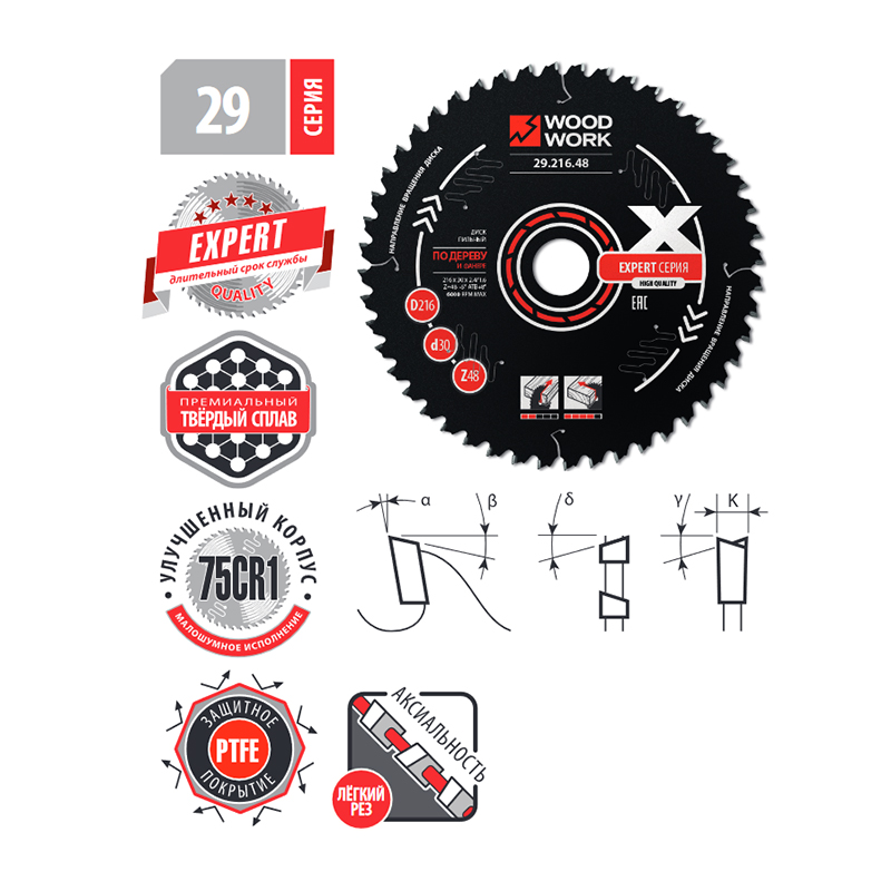 Пильный диск Эксперт 165x2,2/1,6x20 Z=48 A=10 ATB=10 серии 29 Woodwork предназначен для поперечного реза мягкой и твёрдой древесины, а также фанеры. Относится к категории профессионального инструмента для ручного электрооборудования и пильных станков.