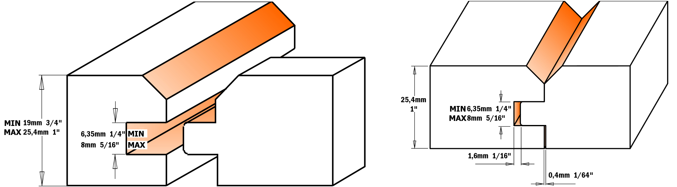 Меры предосторожности: Эти фрезы предназначены для работы по параллельному упору фрезерного стола. Для качественной обработки делайте не менее двух проходов.