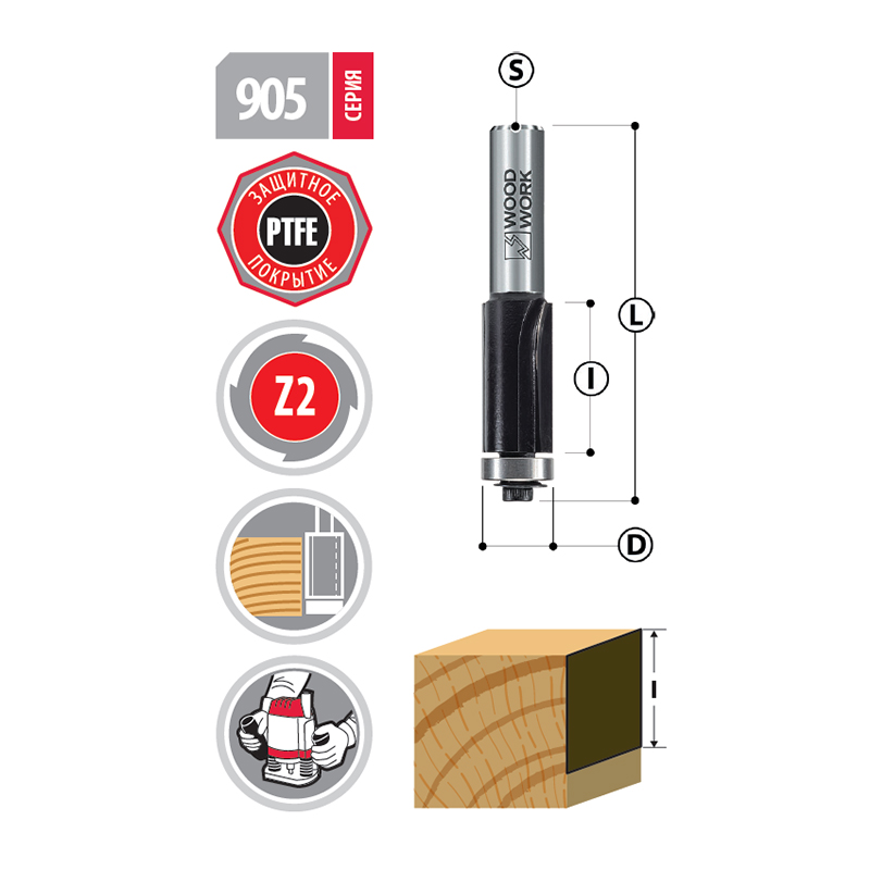 Применяется для копирования деталей по шаблону, обработки свесов после наклейки кромки, чистовой обработки торцов, выборки четверти и выполнения соединений шип-паз и на шпонку. Нижний подшипник обеспечивает точное ведение по готовой заготовке и равномерную обработку.