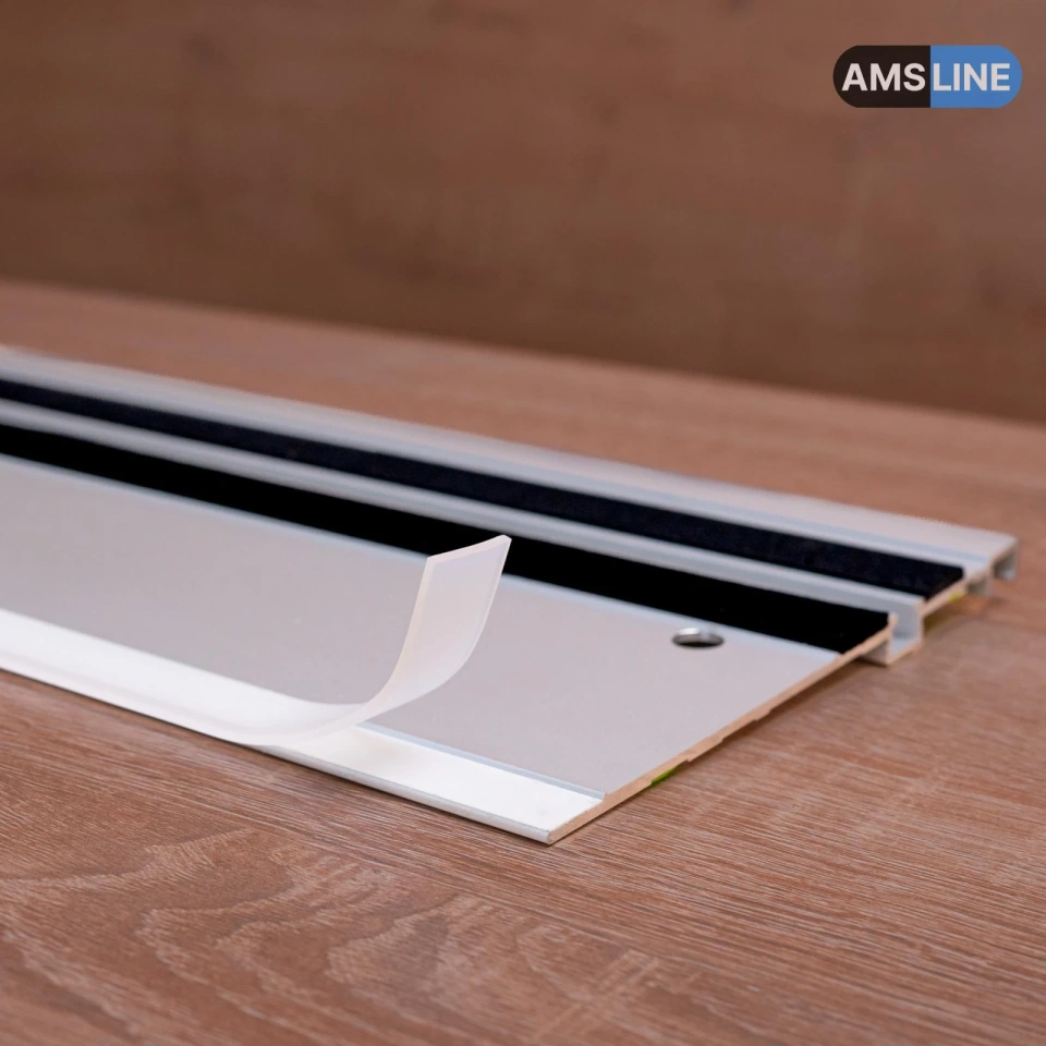 Лента формирует ровную зону контакта с материалом, помогая исключить сколы при продольных и поперечных резах. Плотное прилегание улучшает управление инструментом и обеспечивает надёжное удержание направляющей во время работы.