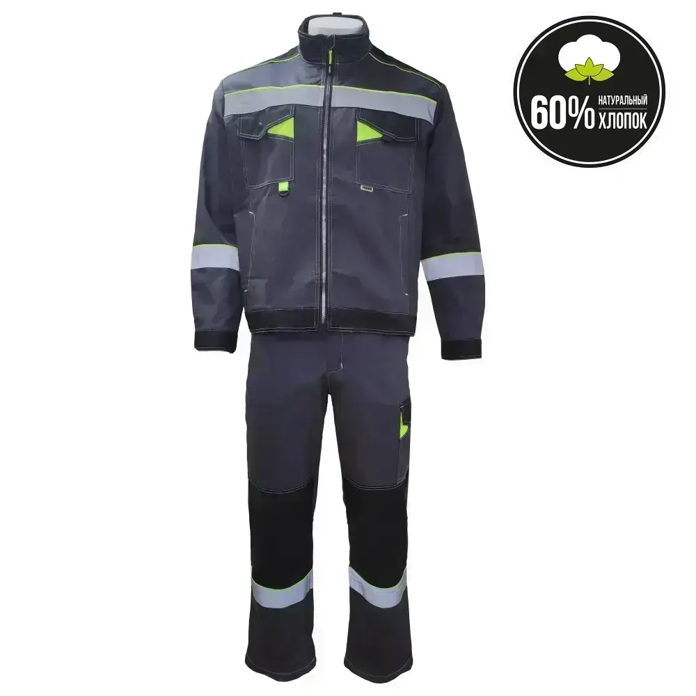 Костюм выполнен из ткани с масловодоотталкивающей отделкой, малоусадочной, дышащей и износостойкой. Изделия из этой ткани подходят для стирки и химчистки на профессиональном оборудовании, что подтверждено протоколом испытаний.