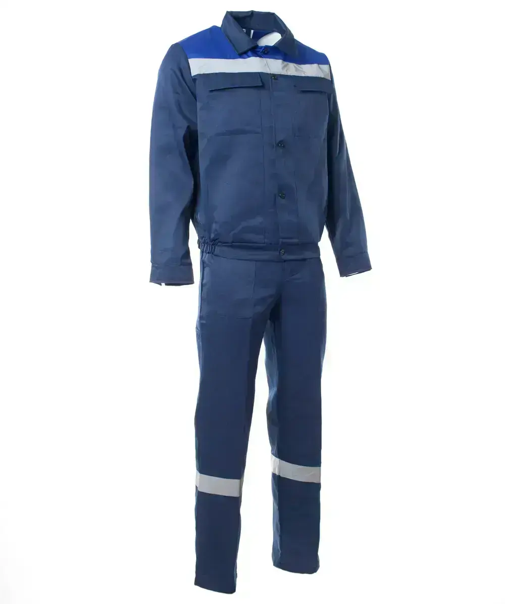 Костюм "СТАНДАРТ-2" изготовлен в соответствии с ГОСТ и включает 2 предмета: куртка, полукомбинезон. На изделии расположены нагрудные накладные карманы с клапаном и нижние карманы в рельефе полочек. Модель куртки-укороченная на поясе с частичной стяжкой на эластичной резинке. Полукомбинезон оснащен многофункциональными карманами для хранения мелочей. Эластичная резинка по талии спинки фиксирует посадку. Гульфик с застежкой в правом боковом шве на пуговицы. Бретели на пластиковых застежках (фастексах), регулирующиеся по длине за счет эластичной резинки. Для безопасной работы сотрудника в местах с плохим освещением на костюме «СТАНДАРТ-2» предусмотрена световозвращающая полоса шириной 50 мм. ТКАНЬ ВЕРХА: Смесовая с водоотталкивающей отделкой (80% ПЭ, 20% ХБ, пл. 200±10 гр./м²).