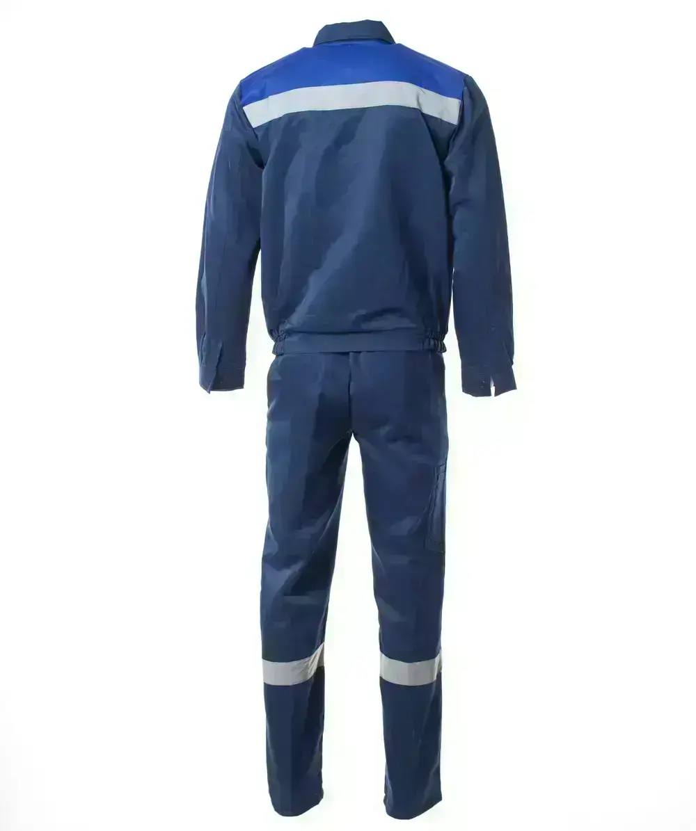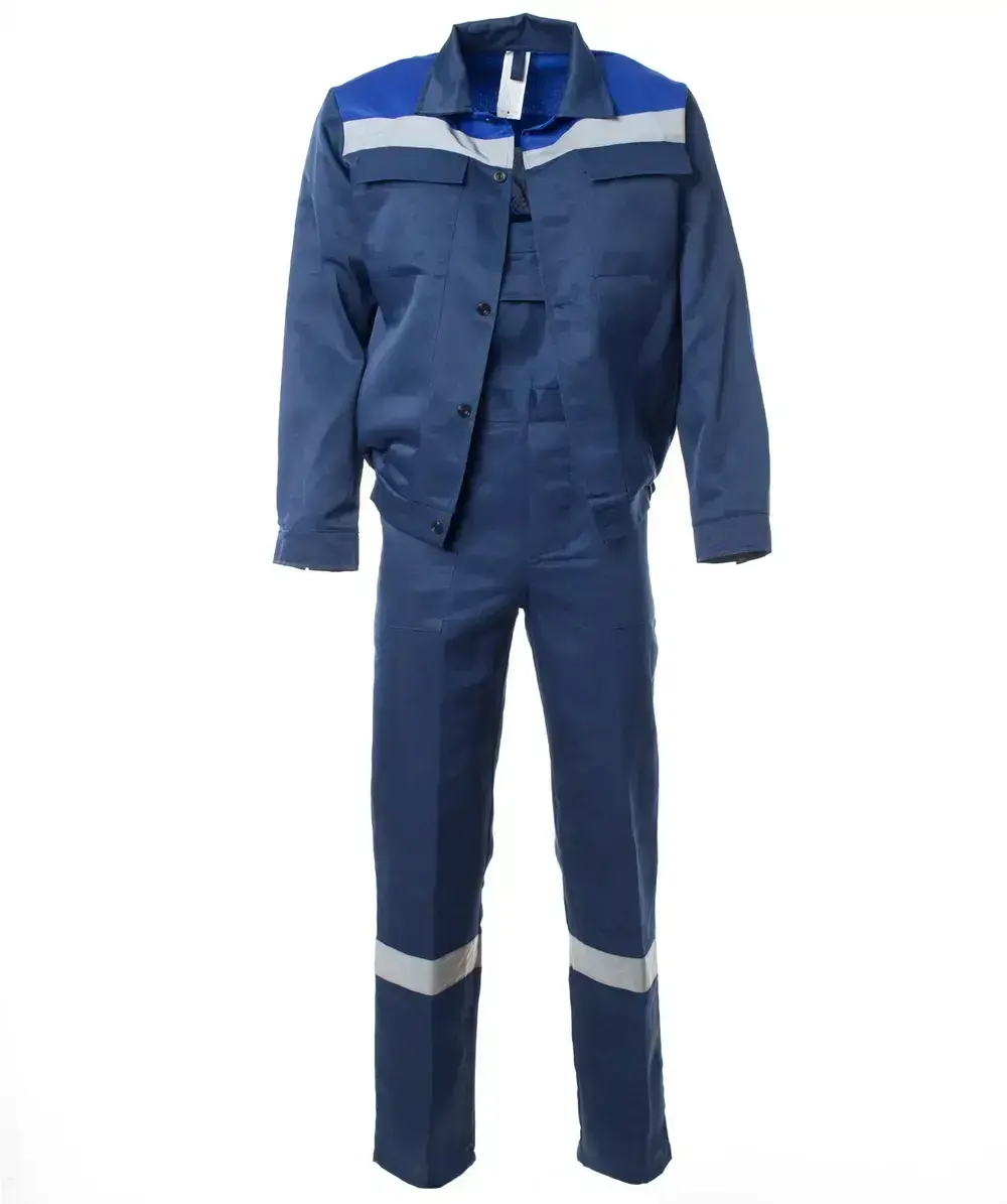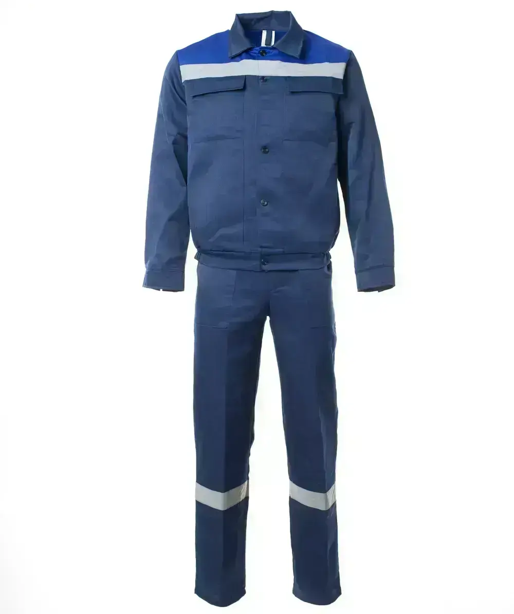 Костюм "СТАНДАРТ-2" изготовлен в соответствии с ГОСТ и включает 2 предмета: куртка, полукомбинезон. На изделии расположены нагрудные накладные карманы с клапаном и нижние карманы в рельефе полочек. Модель куртки-укороченная на поясе с частичной стяжкой на эластичной резинке. Полукомбинезон оснащен многофункциональными карманами для хранения мелочей. Эластичная резинка по талии спинки фиксирует посадку. Гульфик с застежкой в правом боковом шве на пуговицы. Бретели на пластиковых застежках (фастексах), регулирующиеся по длине за счет эластичной резинки. Для безопасной работы сотрудника в местах с плохим освещением на костюме «СТАНДАРТ-2» предусмотрена световозвращающая полоса шириной 50 мм. ТКАНЬ ВЕРХА: Смесовая с водоотталкивающей отделкой (80% ПЭ, 20% ХБ, пл. 200±10 гр./м²).