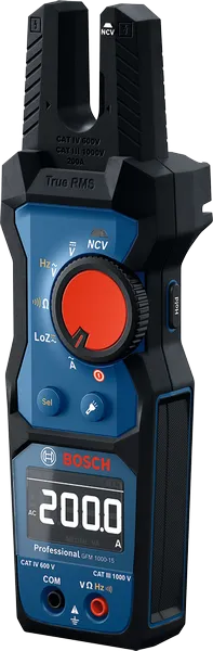 Токоизмерительные клещи GFM 1000-15 BOSCH 0601077400 предназначены для быстрой и точной проверки переменного тока и напряжения переменного/постоянного тока. Конструкция с открытыми губками позволяет измерять ток до 200 А переменного тока без использования тестовых проводов, что ускоряет выполнение работ.