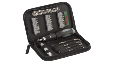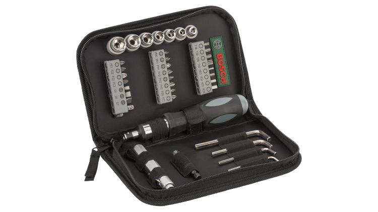 Биты длиной 25 мм: PH 0; PH 1 (2 шт.); PH 2 (2 шт.); PH 3; PZ 0; PZ 1 (2 шт.); PZ 2 (2 шт.); PZ 3; SL 4; SL 6; SL 7; HEX 3; HEX 4; HEX 5; HEX 6; T 15; T 20; T 25; T 40.