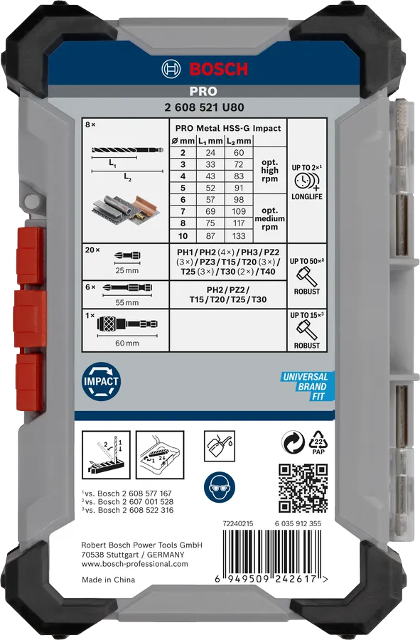 Набор PRO Impact Metal Set предназначен для интенсивного завинчивания крепежа и долговечного сверления металла. Подходит для использования с ударными шуруповёртами и дрелями-шуруповёртами при выполнении монтажных и сборочных работ.
