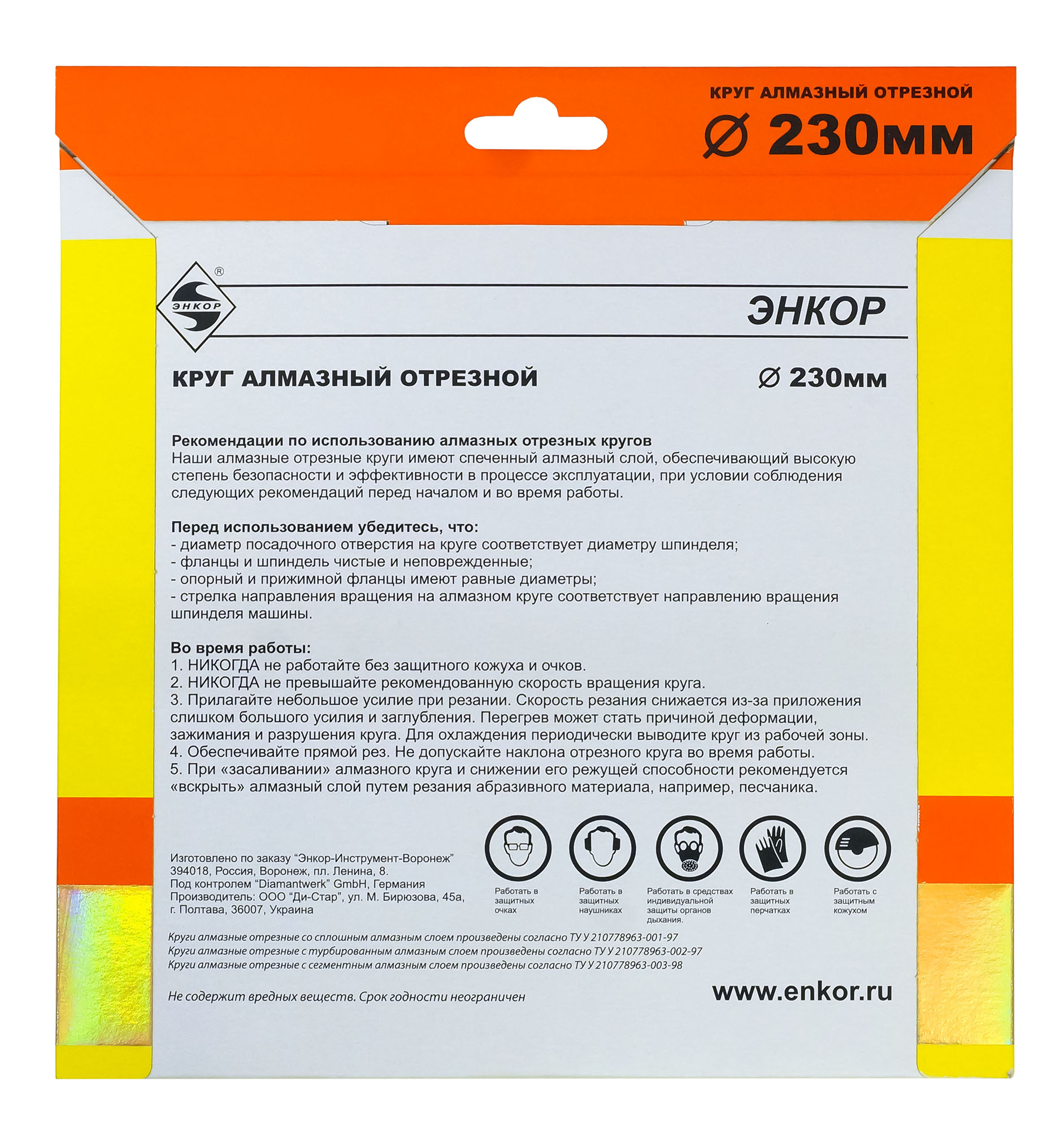 Алмазные отрезные круги «Энкор Эксперт» изготовлены методом горячего прессования с применением лазерной сварки из алмазного сырья самого высокого качества. Готовые сегменты соединяются с корпусом методом двусторонней лазерной сварки. Процесс сварки полностью автоматизирован и выполняется на высококачественном современном оборудовании с последующим контролем каждого соединения.