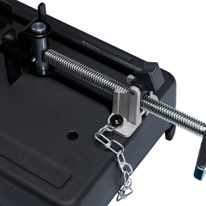 Удобная горизонтальная рукоятка снижает утомляемость при работе, а встроенная транспортировочная ручка обеспечивает сбалансированное распределение веса при переноске. Быстрозажимные тиски и шпиндельная фиксация упрощают замену диска, а встроенный шестигранный ключ всегда под рукой. Конструкция с двойной изоляцией и лёгкий вес повышают мобильность и безопасность при эксплуатации.