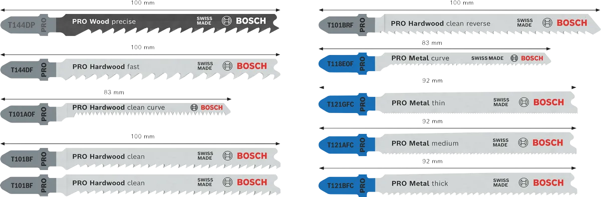 Полотна подходят для прямых и фигурных резов по древесине, древесным плитам и металлу.