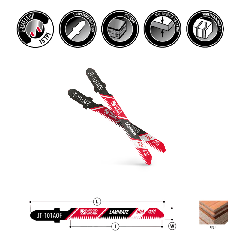 Пилки лобзиковые Woodwork JT-101AOF предназначены для универсального реза ламинированных панелей, ЛДСП и аналогичных материалов. Подходят для работы с материалами толщиной от 1,5 до 25 мм.