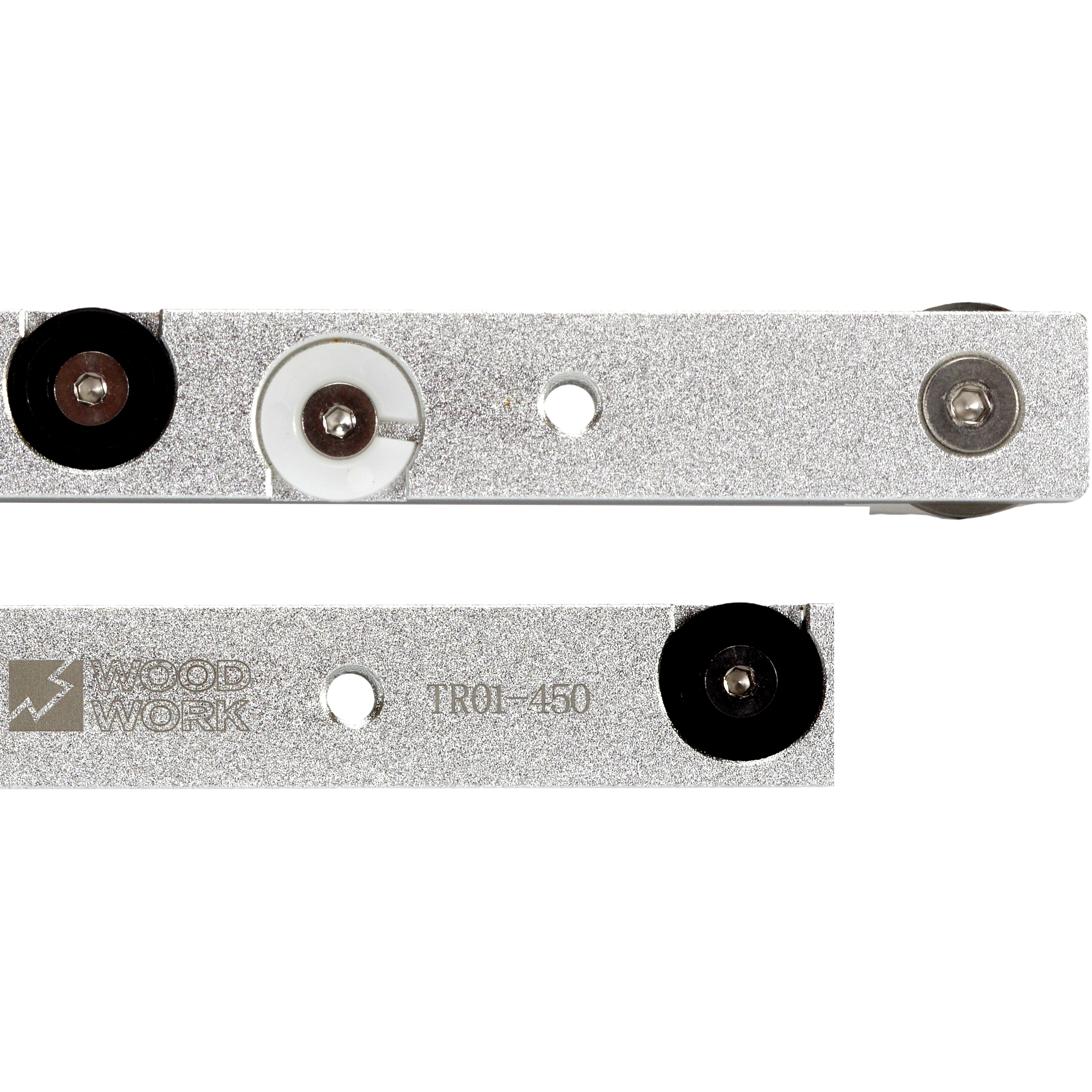 Пластиковые регулировочные шайбы позволяют точно устранить люфт, повышая точность установки упоров и стабильность перемещения. Ползун WOODWORK TR01-300 оснащён двумя парами пластиковых колец-втулок, обеспечивающих плавный ход и длительный срок службы.