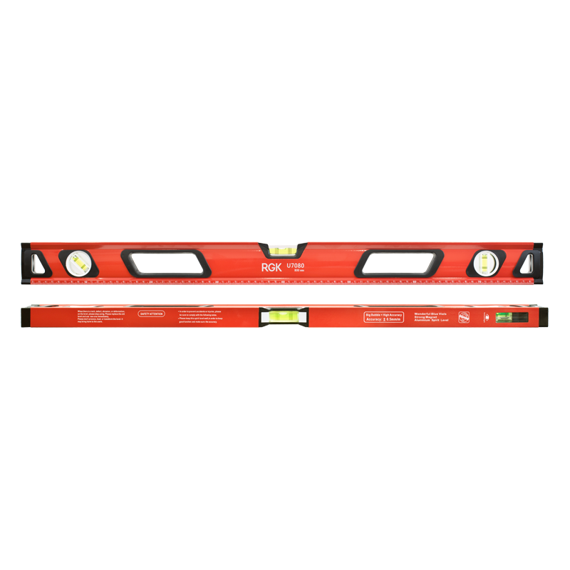 Строительный уровень RGK U7080 длиной 80 см предназначен для контроля горизонтальных и вертикальных поверхностей при выполнении монтажных и отделочных работ. В корпус встроен магнит для фиксации на металлических конструкциях, что позволяет выполнять разметку без удержания инструмента руками. Специальное смотровое окошко на узком верхнем ребре отображает положение пузырька вертикальной ампулы при работе в труднодоступных местах.