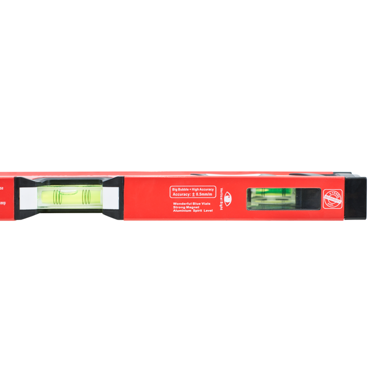 На корпус нанесена шкала с ценой деления 1 мм. Обозначения выполнены методом гравировки и сохраняют чёткость при контакте с бетоном, древесиной и другими материалами. Боковые вставки из ударопрочного пластика защищают края корпуса при падении. Ампулы изготовлены из акрила и устойчивы к протеканию в течение срока службы.
