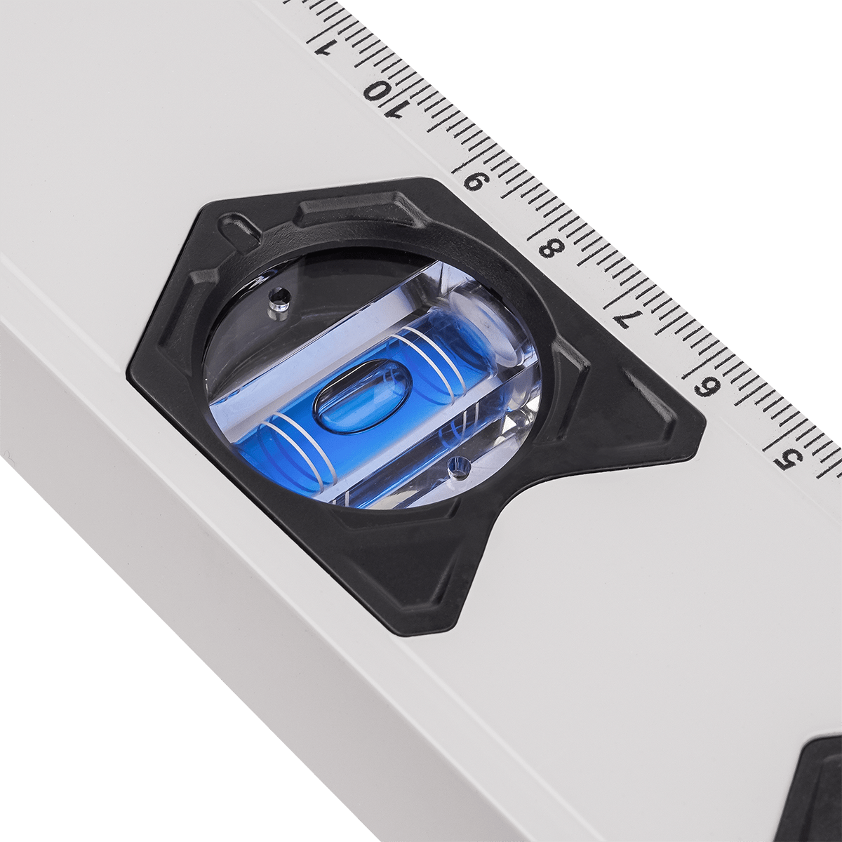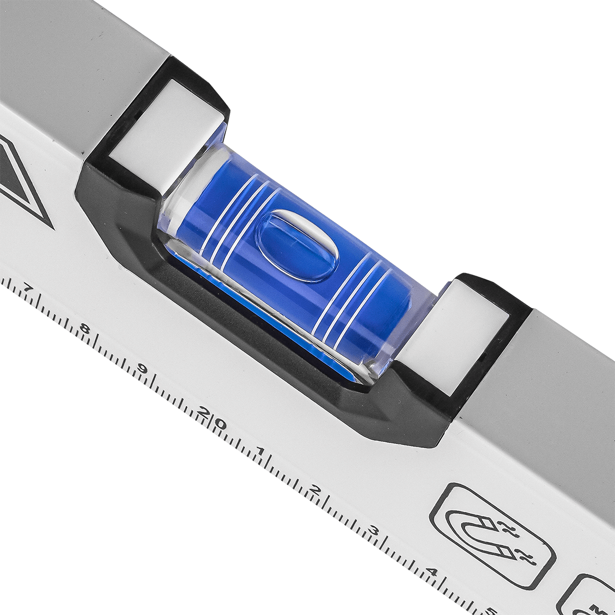 Конструкция оснащена тремя ампулами для контроля горизонтали, вертикали и угла 45°. Встроенный магнит позволяет фиксировать инструмент на металлических поверхностях. Стальной корпус толщиной 0,7 мм сохраняет геометрию при механических воздействиях, а ударопрочные боковые вставки защищают края при падении. Шкала с ценой деления 1 мм устойчива к истиранию и сохраняет чёткость в процессе эксплуатации.