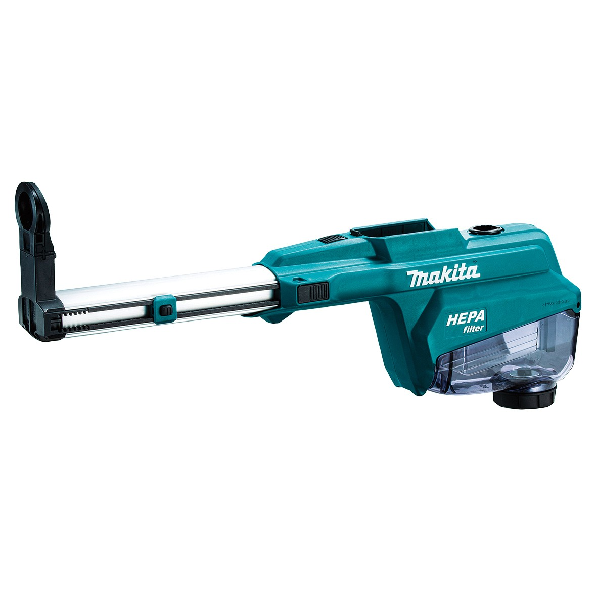 Система пылеудаления Makita DX15 предназначена для перфоратора HR007G и обеспечивает сбор пыли непосредственно в процессе сверления. Модуль подключается к инструменту и активируется при нажатии на курок.