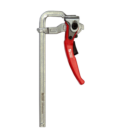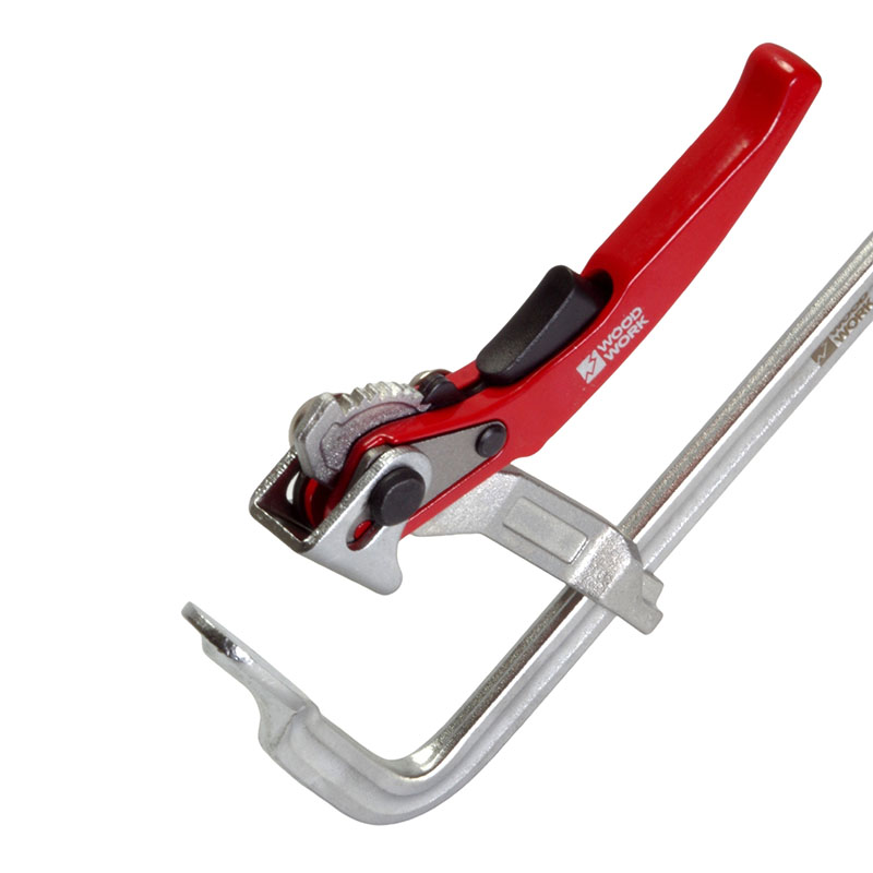 Рычажный механизм позволяет выполнять зажим одним движением, экономя время и повышая производительность. Конструкция устойчива к вибрациям и равномерно распределяет усилие прижима, предотвращая повреждение поверхности материала. Эргономичная форма рукоятки обеспечивает удобство работы и точное регулирование силы фиксации.