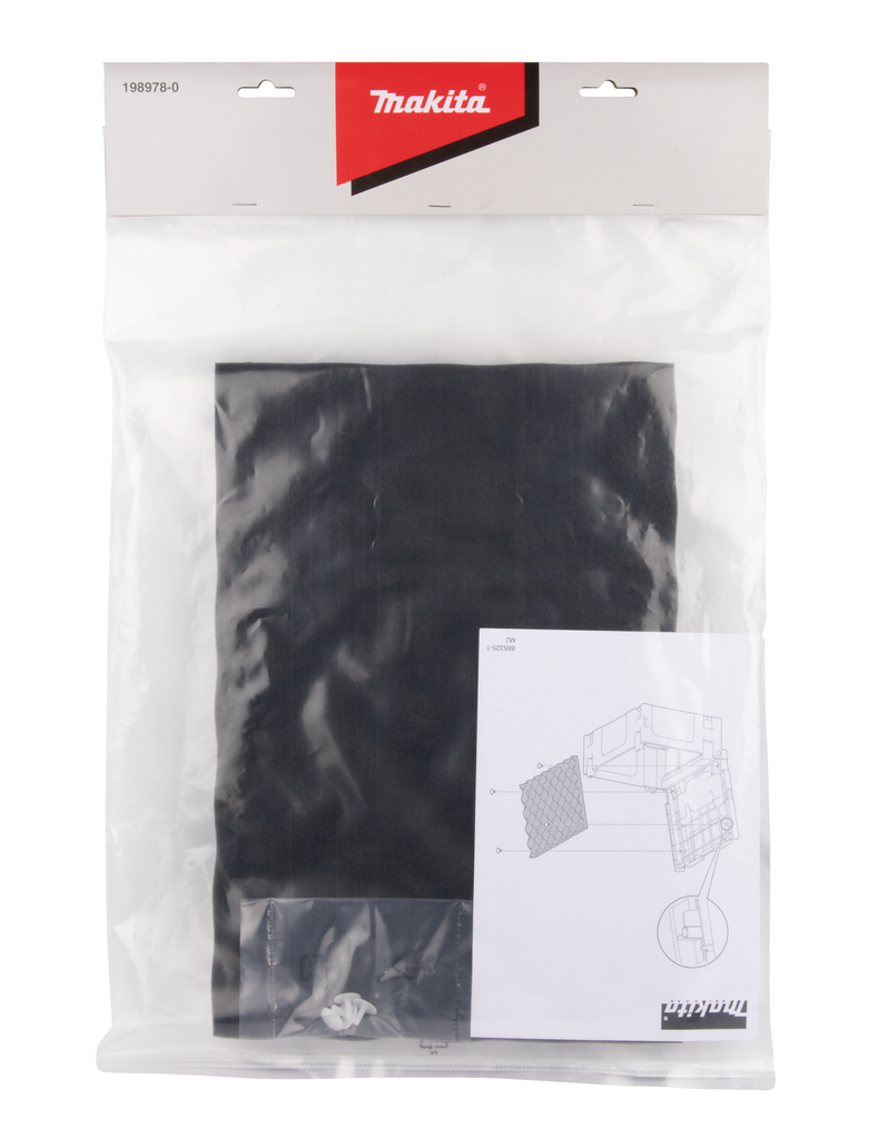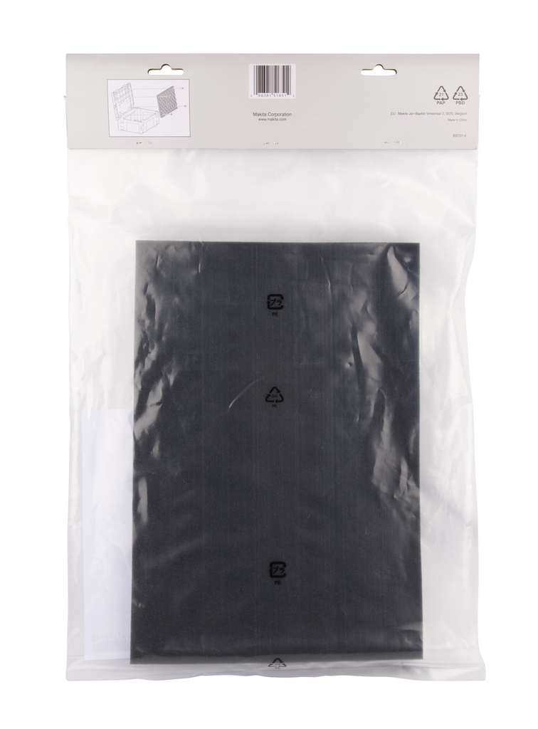 Поролоновая вставка для верхней части коробки Makita Mbox1. Крепится согласно инструкции, обеспечивает фиксацию инструмента и защиту от повреждений.