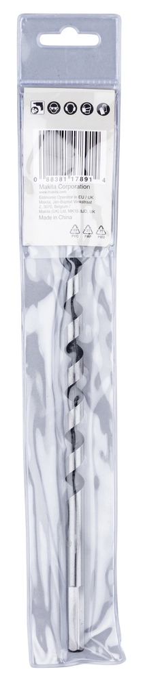 Сверло с одной спиралью, с самоврезающимся винтовым наконечником и боковым резцом. Крупная гладкая резьба даёт возможность стружке легко выходить, независимо от того, сухая древесина или влажная. Шестигранный хвостовик предотвращает проскальзывание сверла в патроне. Подходит для сверления твёрдых пород древесины.
