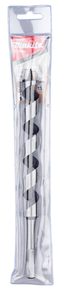 Спиральное сверло по дереву Makita D-07406 диаметром 20 мм и длиной 250 мм предназначено для сверления глубоких отверстий в массиве древесины.