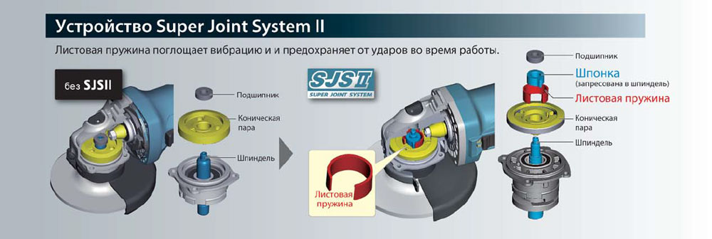 Система SJS II снижает вибрацию и защищает редуктор от рывков при запуске, обеспечивая плавный ход и долговечность инструмента. Наличие регулировки оборотов позволяет подобрать оптимальную скорость под конкретный материал, а система поддержания постоянных оборотов под нагрузкой гарантирует стабильное качество обработки. Дополнительно предусмотрена защита от перегрузок и повторного пуска, повышающая безопасность при эксплуатации.