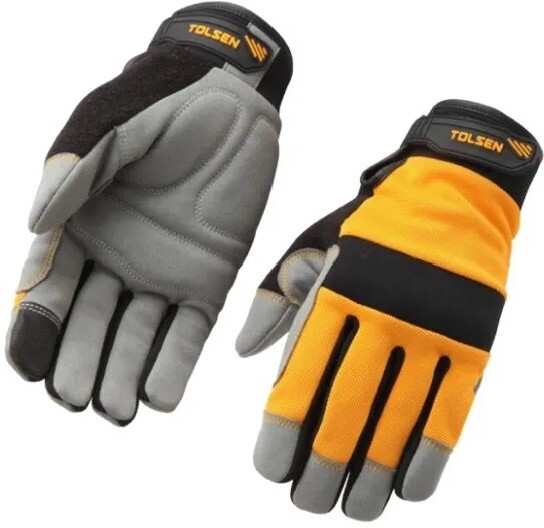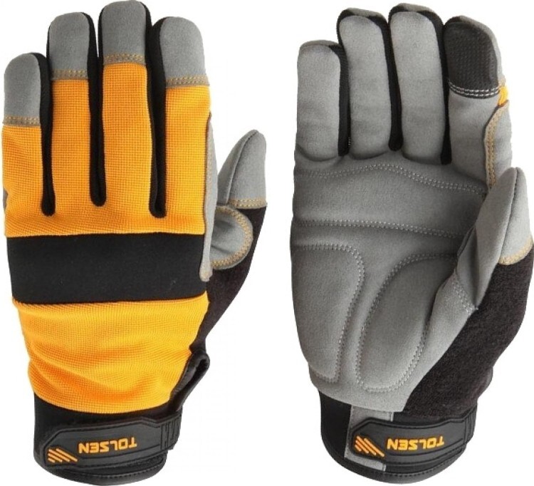 ПЕРЧАТКИ TOLSEN 45044-с мягкими вставками на ладонной и тыльной сторонах гарантируют защиту от истирания и ударов. Используются при проведении монтажных работ. Отличаются высокой прочностью и износоустойчивостью. . Предприняты меры для предотвращения выскальзывания предметов за счет специального материала на ладони и пальцах.